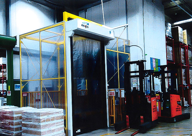 工場などの大きな空間を仕切ってスペースを作ります。固定的な部屋を作るよりも低コストで、スペースを最適な大きさにすることで空調 の効率化もはかれます。簡易的な風除室としても活用されています。