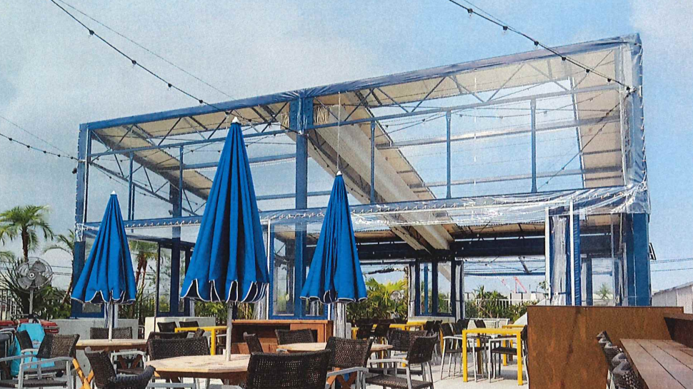 手動・電動で屋根部分が開閉可能なテントです。工場では屋根を開いて上部からクレーンで大きな資材や機器類を搬入することができるほか、屋根を開いて自然光を採り入れられることから飲食店等で活用されています。屋根部分の開閉は電動で操作するものが一般的ですが、テントのデザインから開閉機器の設計・施工まですべてをお任せください。オシャレな店舗も多数手がけていますので、機能ばかりでなくデザインで集客をはかりたい店舗様のご要望にもお応えできます。