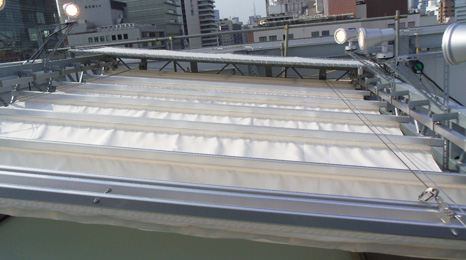 商業施設など法的な問題で、屋根が設置できない場所に、電動で簡単に開閉できる屋根を、法的緩和で設置できることがあります。