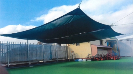 近年の猛暑・酷暑対策として日除け・シェードのニーズが急上昇しています。学校や幼稚園・保育所の校庭に大きな日陰を作る開閉式(手動・電動)のUシェードワイヤーシステム、比較的コンパクトなスペースには手軽に設置できるUシェード脱着式、いずれも当社開発商品がお薦めです。生地に遮光メッシュシートを使用しているので明るい可視光線を採り入れながら有害な紫外線を90%カットすることが可能、強風に対する強度も実証済み。シートの開閉は手動式と電動式があり、電動式にすれば女性でも楽に操作できます。